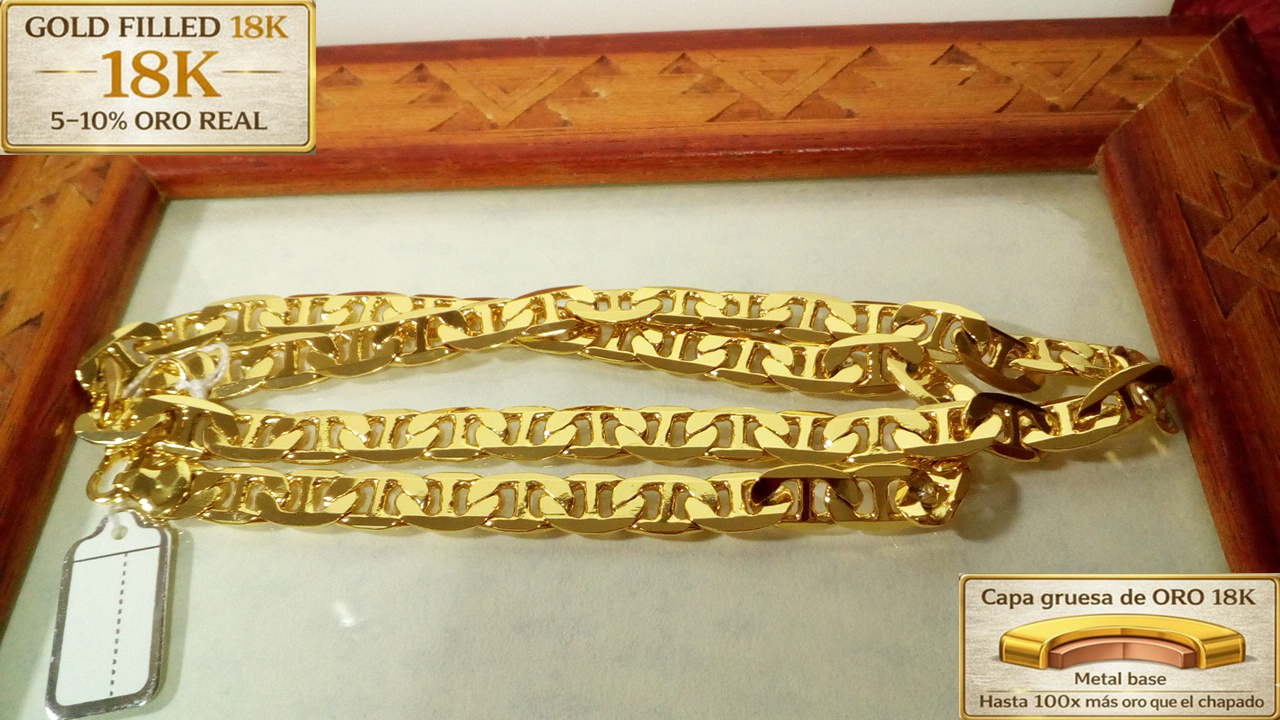 Se trata de una cadena para hombre Golf Filled 18K (laminado de Oro), puede comprobar el color autentico y el diseño muy original.