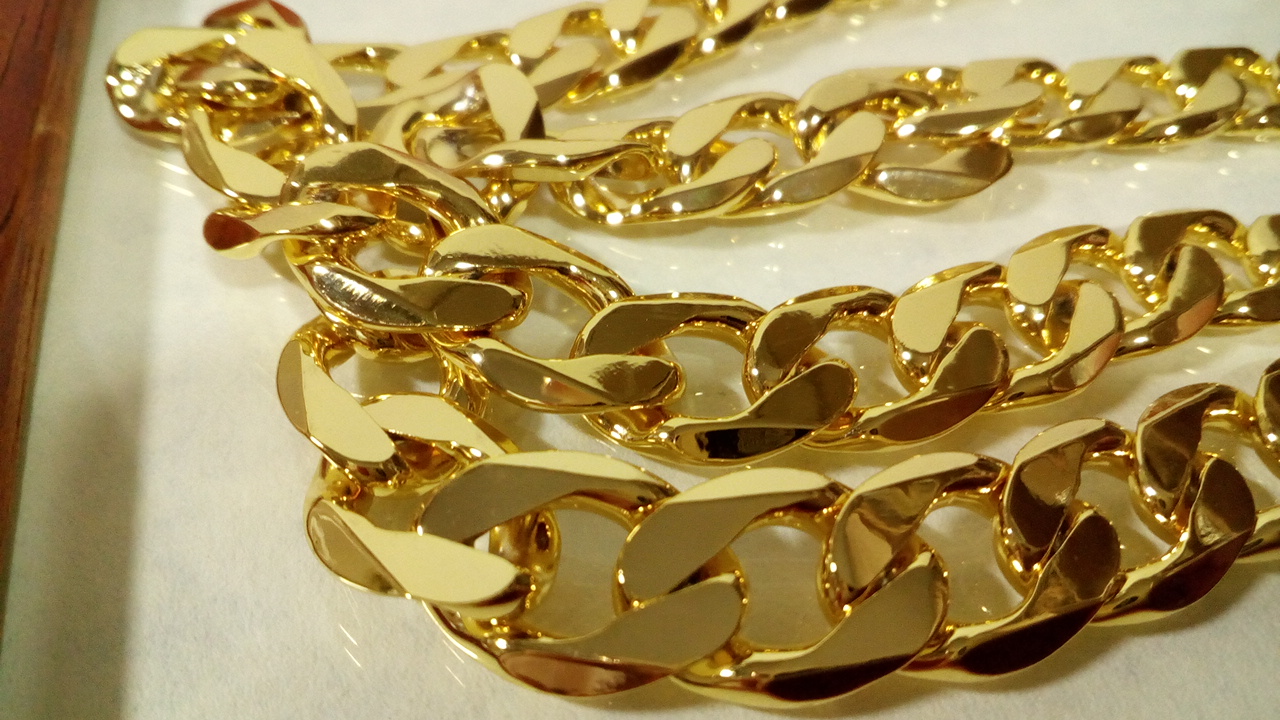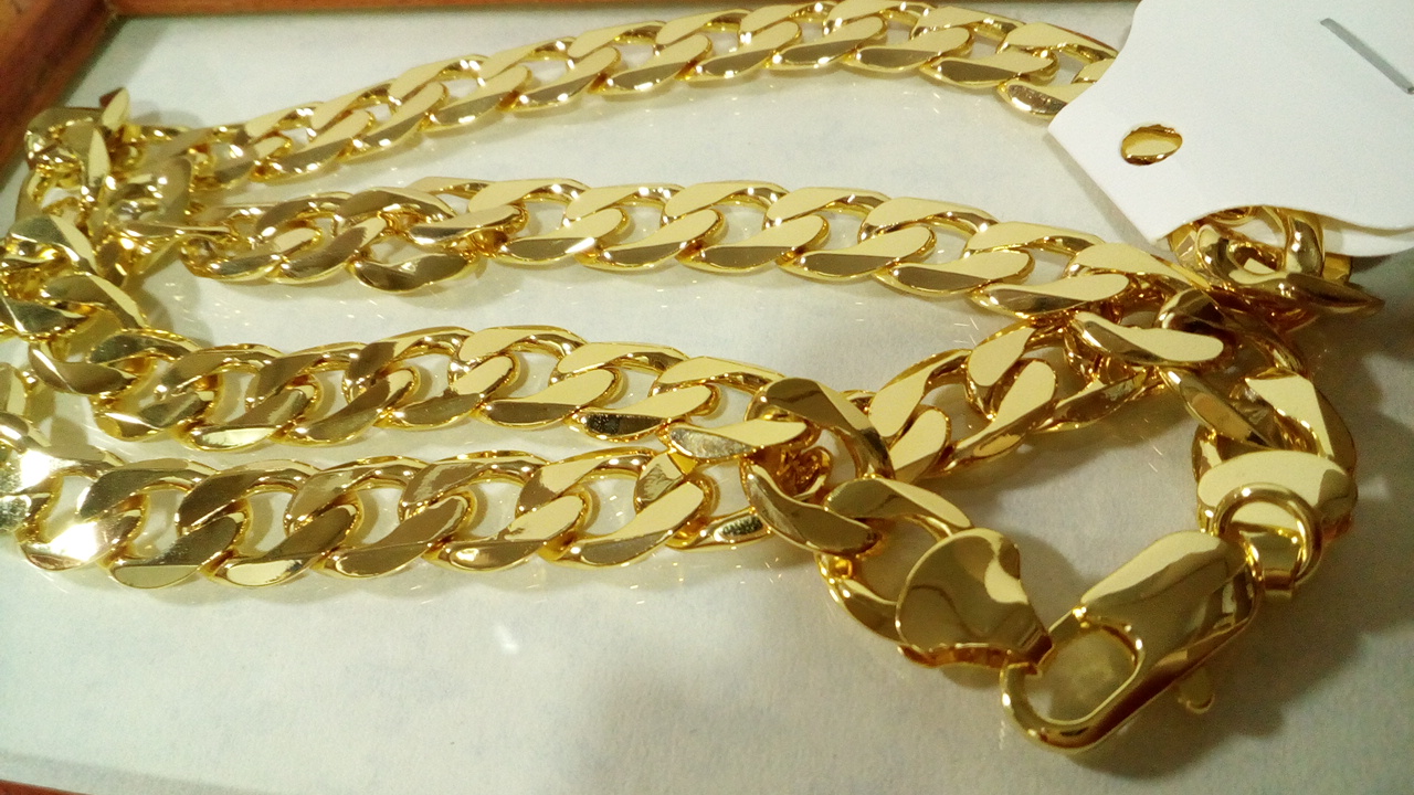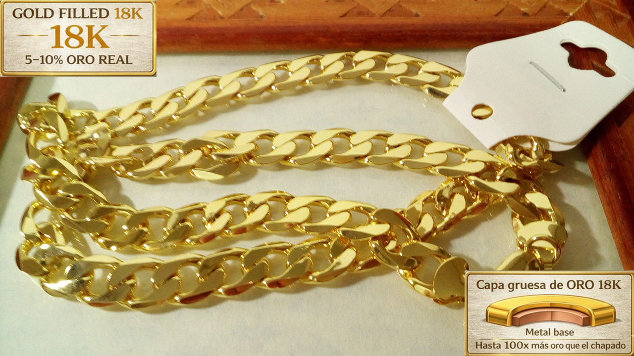 Cadena Cubana "New Style" tiene los eslabones un poco más alargados que su hermana Cubana, igualmente la medida es de 10MM X 60CM una cadena clásica y atractiva con un brillo espectacular dando buena cuenta del Oro que lleva laminado.