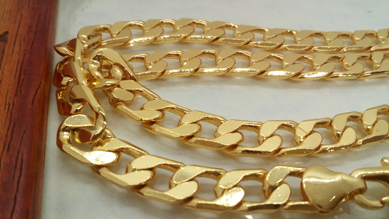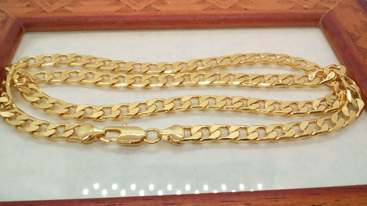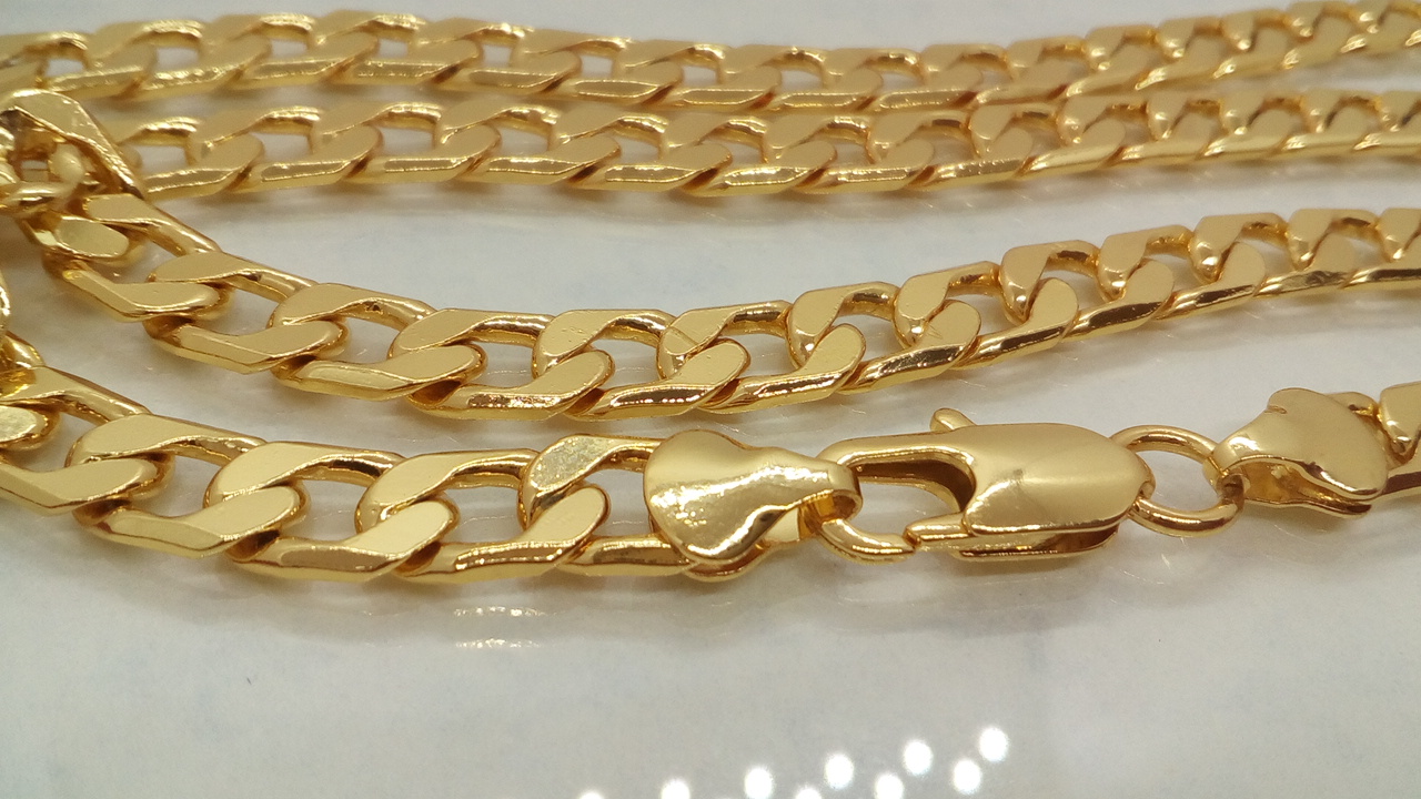 Cadena Cubana disponible en dos medidas, 7MM X 55 (solitar por contacto) y 60CM (disponible en la web) una cadena clásica y atractiva con un brillo espectacular dando buena cuenta del Oro que lleva laminado.