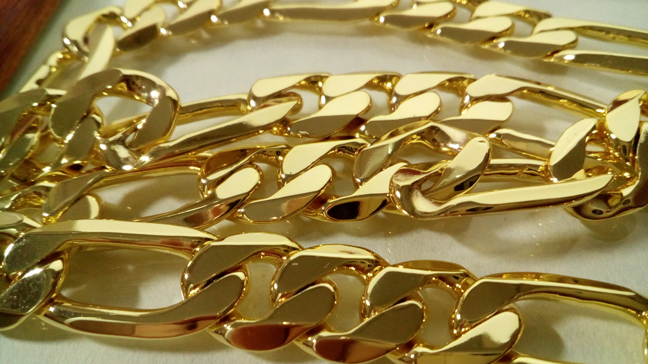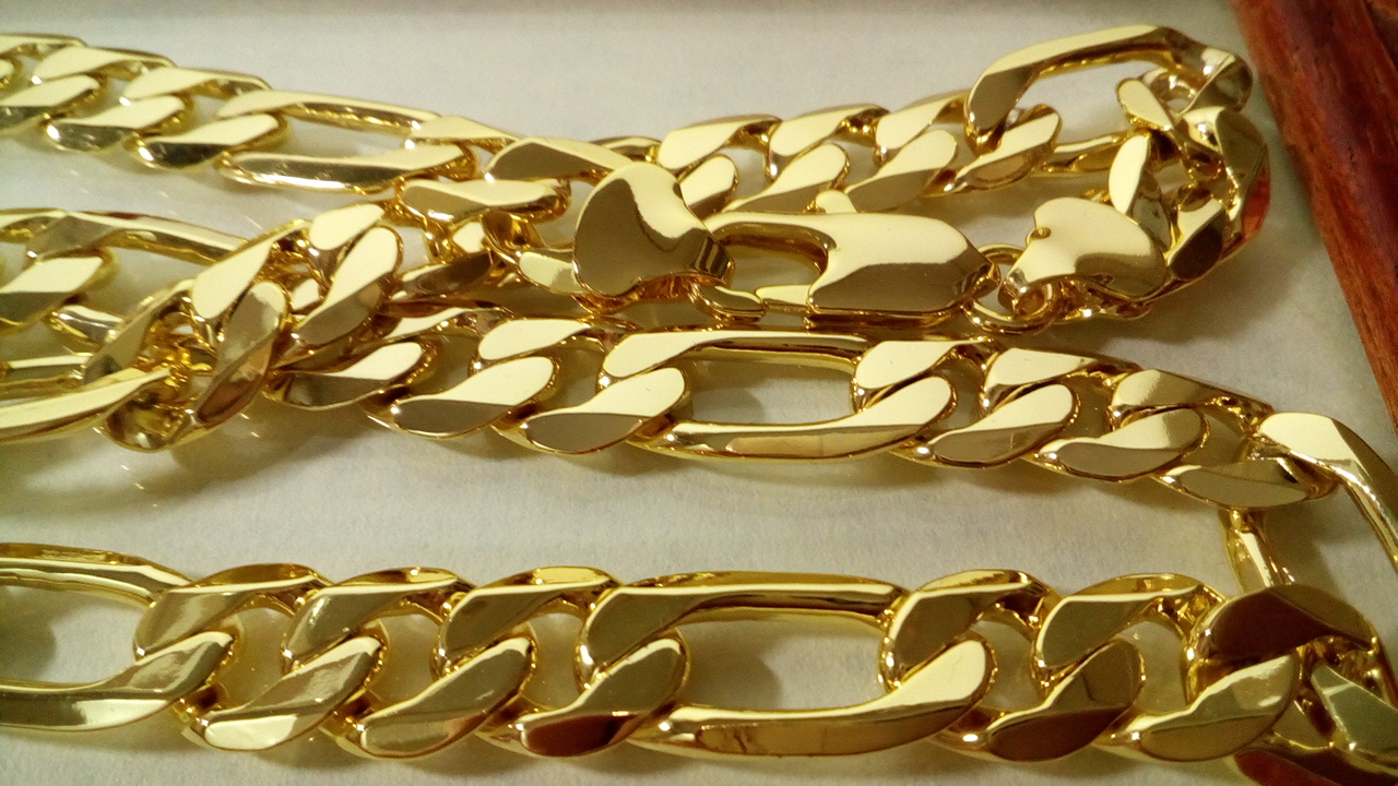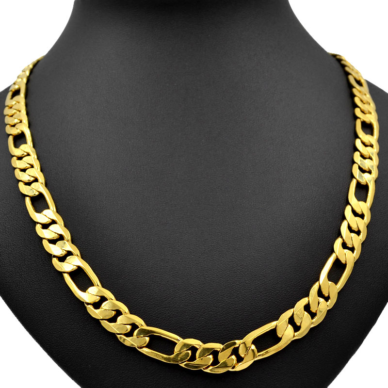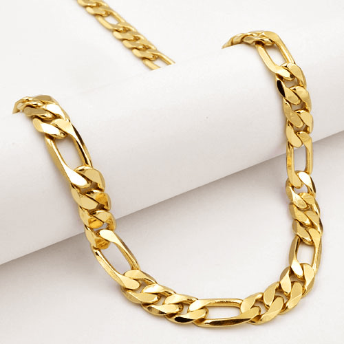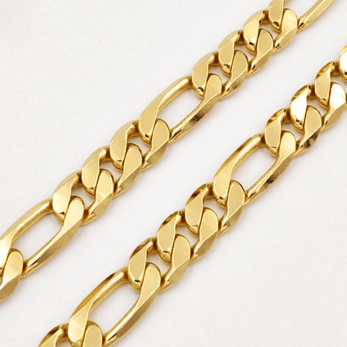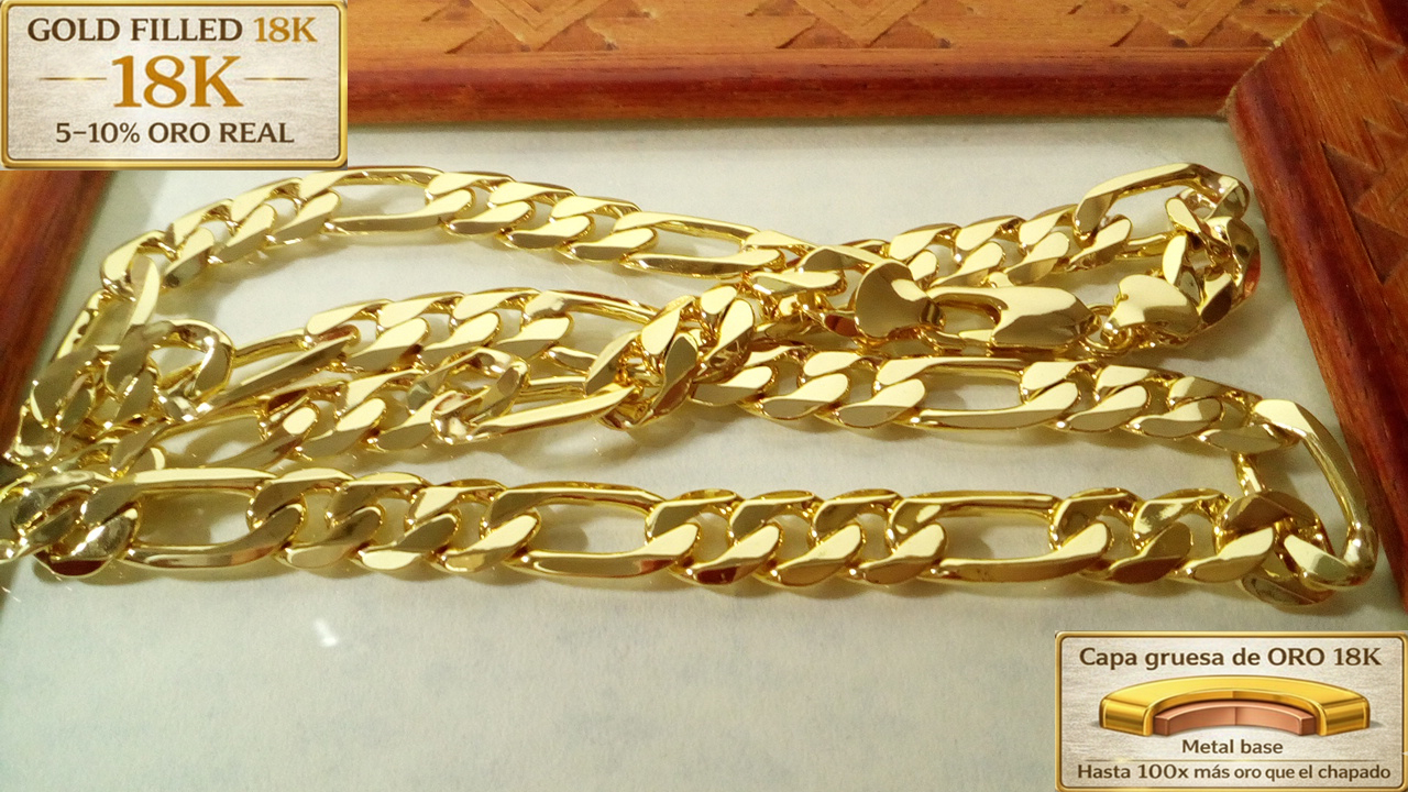 Cadena Fígaro 9MM X 60CM una cadena clásica y atractiva con un brillo espectacular dando buena cuenta del Oro que lleva laminado.