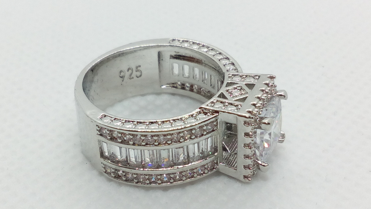 Un diseño espectacular con un brillante central en talla princesa que destaca por su elegancia y estilo. Este anillo chapado en plata cuenta con incrustaciones de piedras que aportan un brillo impresionante, ideal para ocasiones especiales o para lucir un toque sofisticado en tu día a día. La talla 6 USA equivale a la talla 12 española. Verifica bien tu talla antes de comprar, ya que no se aceptan devoluciones por error de tamaño.